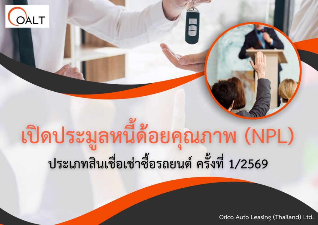 บริษัท โอริโค่ ออโต้ ลีสซิ่ง (ประเทศไทย) จำกัด มีความประสงค์ที่จะขายหนี้ด้อยคุณภาพประเภทสินเชื่อเช่าซื้อรถยนต์ด้วยวิธีการประมูลแบบปิดผนึก ครั้งที่ 1/2569